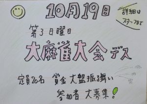 2025年10月の麻雀大会日程です。